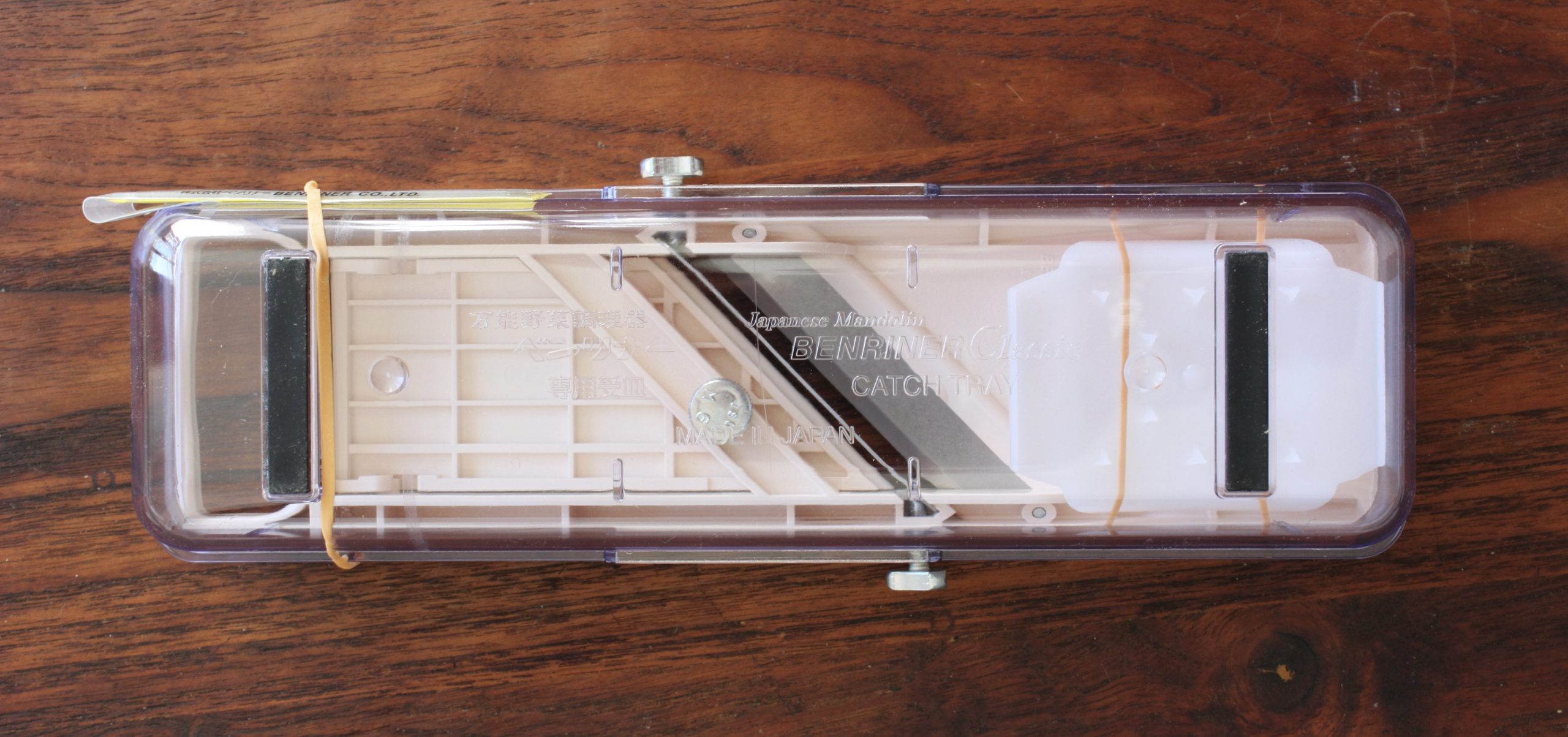 This slicer has thickness settings and combs for different sizes julienne and batons.