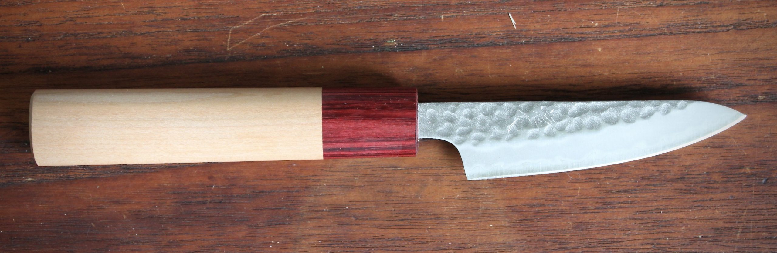 There is lots to like about this knife. the steel, A Wa style handle and the hammer finish on the blade. There is currently the matching 210 Gyuto available.
